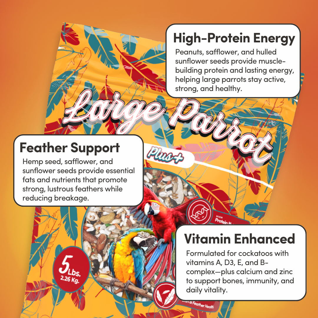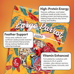 Daily Portions: Offer ¾ to 1 cup of feed per Large Parrot daily, adjusting based on activity levels and dietary needs.