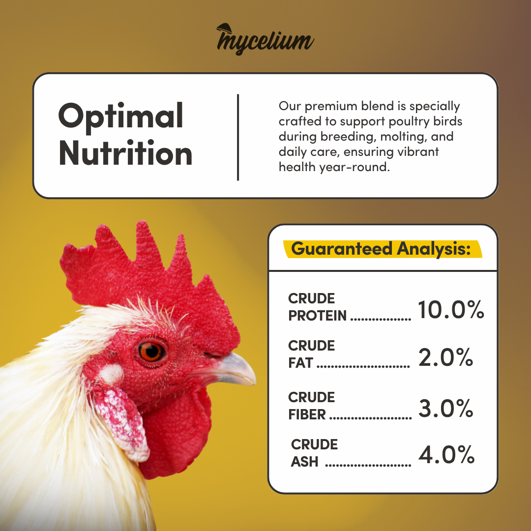 Omega-rich grains enhance feather regrowth and vibrancy, helping your poultry maintain a healthy, beautiful plumage.