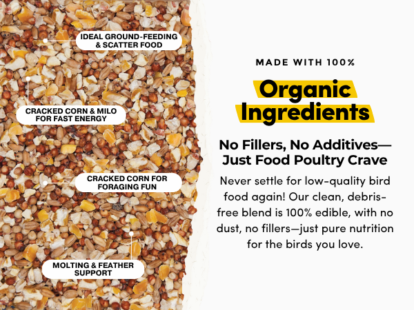 With 3% fiber from wheat and milo, this scratch feed promotes healthy digestion and helps maintain a balanced gut for your poultry.