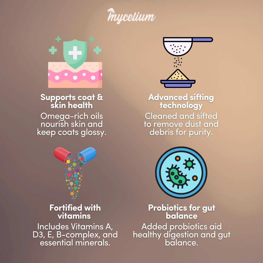 Feeding Method: Serve dry in a shallow, tip-resistant dish. For enrichment, you can also scatter small amounts to encourage natural foraging behavior.